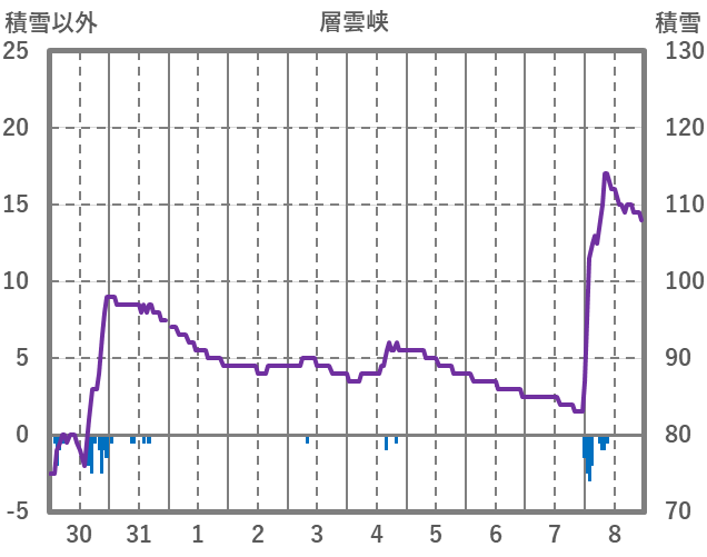 | 日 | 時 | 気温 | 降水 | 風向/風速 | 日照 | 積雪 | 降雪 |