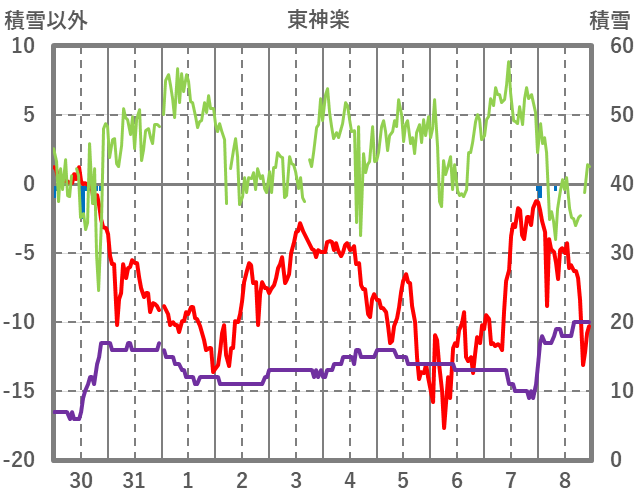 | 日 | 時 | 気温 | 降水 | 風向/風速 | 日照 | 積雪 | 降雪 |