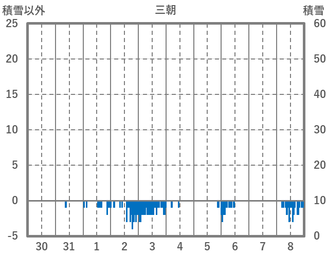 | 日 | 時 | 気温 | 降水 | 風向/風速 | 日照 | 積雪 | 降雪 |
