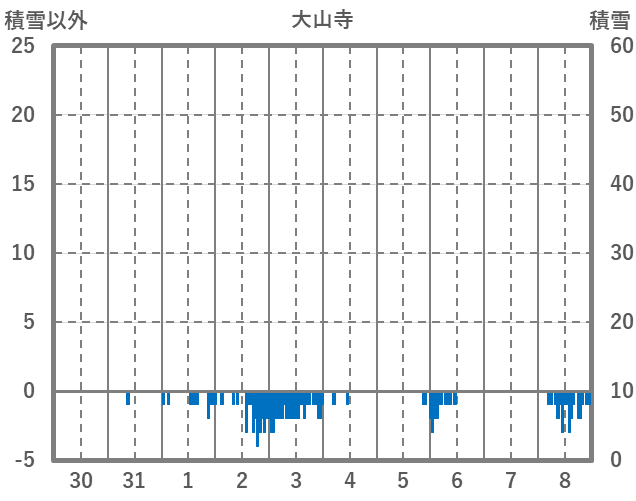 | 日 | 時 | 気温 | 降水 | 風向/風速 | 日照 | 積雪 | 降雪 |
