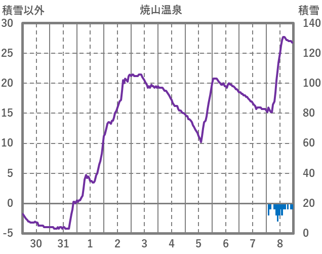 | 日 | 時 | 気温 | 降水 | 風向/風速 | 日照 | 積雪 | 降雪 |