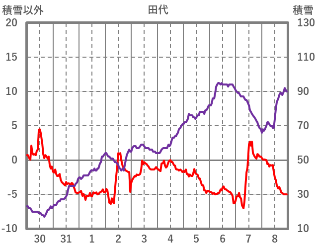 | 日 | 時 | 気温 | 降水 | 風向/風速 | 日照 | 積雪 | 降雪 |