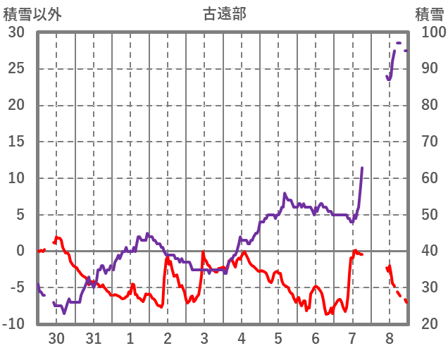 | 日 | 時 | 気温 | 降水 | 風向/風速 | 日照 | 積雪 | 降雪 |