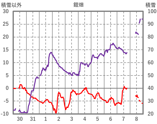 | 日 | 時 | 気温 | 降水 | 風向/風速 | 日照 | 積雪 | 降雪 |