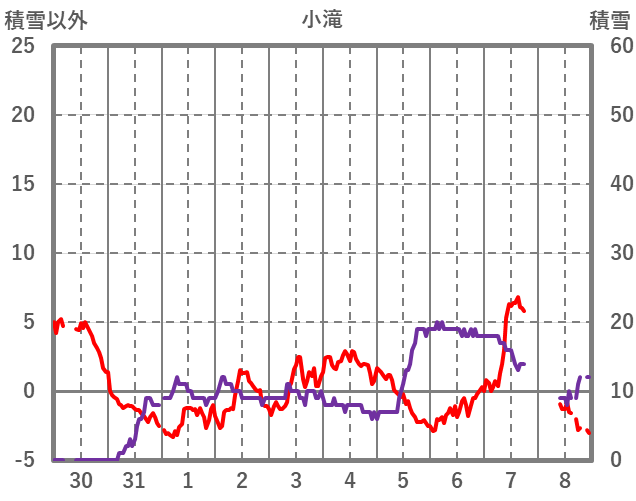 | 日 | 時 | 気温 | 降水 | 風向/風速 | 日照 | 積雪 | 降雪 |