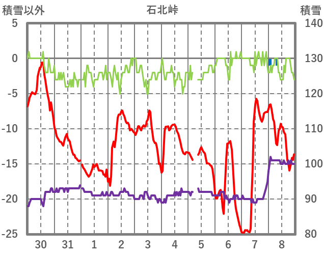 | 日 | 時 | 気温 | 降水 | 風向/風速 | 日照 | 積雪 | 降雪 |