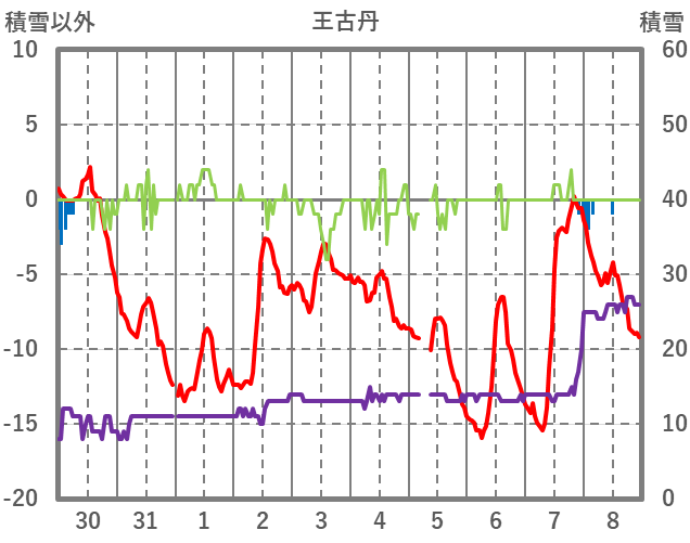 | 日 | 時 | 気温 | 降水 | 風向/風速 | 日照 | 積雪 | 降雪 |