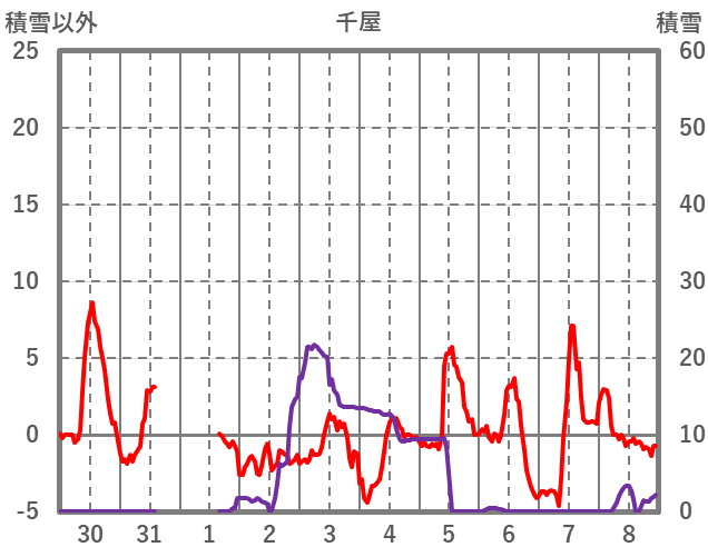 | 日 | 時 | 気温 | 降水 | 風向/風速 | 日照 | 積雪 | 降雪 |