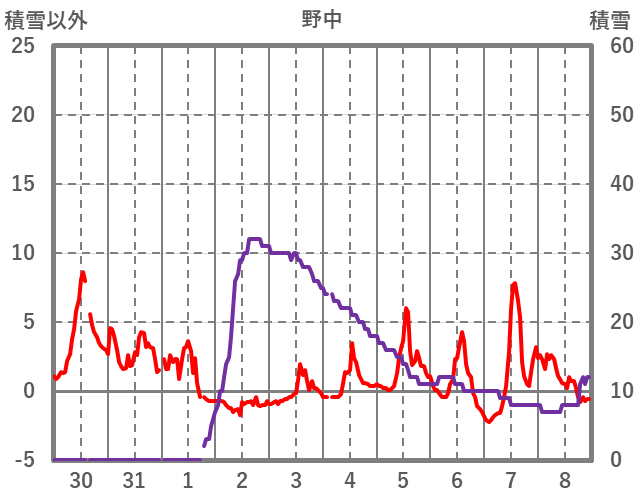 | 日 | 時 | 気温 | 降水 | 風向/風速 | 日照 | 積雪 | 降雪 |