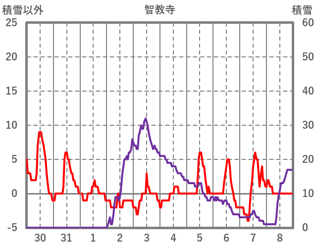 | 日 | 時 | 気温 | 降水 | 風向/風速 | 日照 | 積雪 | 降雪 |