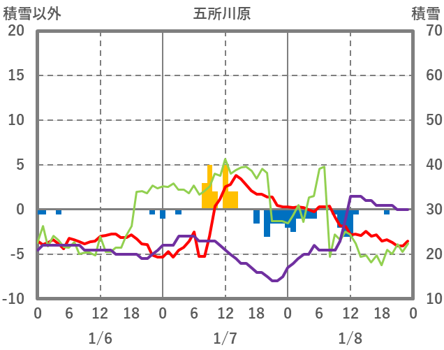| 日 | 時 | 気温 | 降水 | 風向/風速 | 日照 | 積雪 | 降雪 |