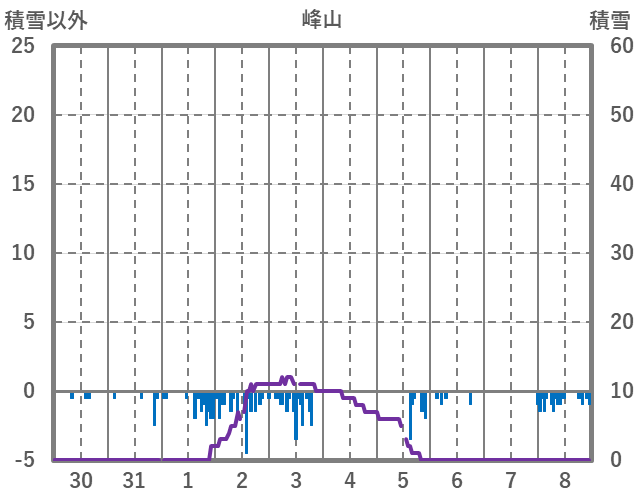 | 日 | 時 | 気温 | 降水 | 風向/風速 | 日照 | 積雪 | 降雪 |