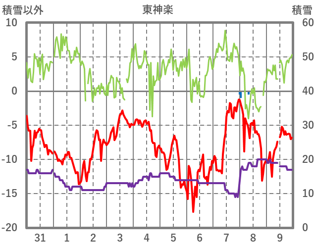 | 日 | 時 | 気温 | 降水 | 風向/風速 | 日照 | 積雪 | 降雪 |