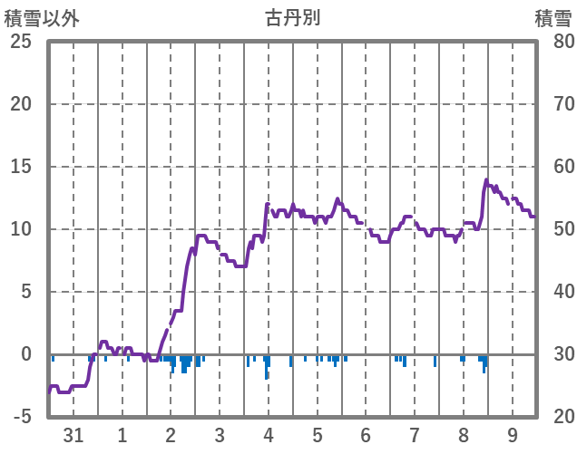 | 日 | 時 | 気温 | 降水 | 風向/風速 | 日照 | 積雪 | 降雪 |
