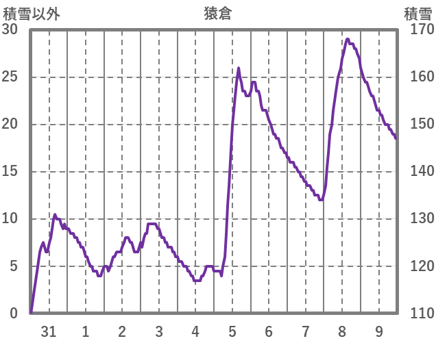 | 日 | 時 | 気温 | 降水 | 風向/風速 | 日照 | 積雪 | 降雪 |