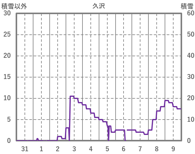 | 日 | 時 | 気温 | 降水 | 風向/風速 | 日照 | 積雪 | 降雪 |