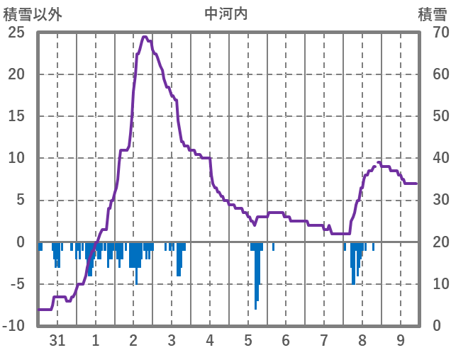 | 日 | 時 | 気温 | 降水 | 風向/風速 | 日照 | 積雪 | 降雪 |