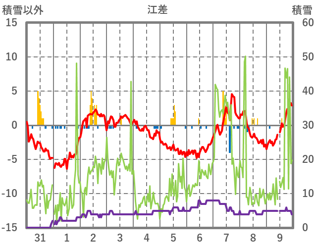 | 日 | 時 | 気温 | 降水 | 風向/風速 | 日照 | 積雪 | 降雪 |
