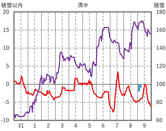 | 日 | 時 | 気温 | 降水 | 風向/風速 | 日照 | 積雪 | 降雪 |