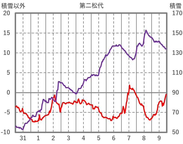 | 日 | 時 | 気温 | 降水 | 風向/風速 | 日照 | 積雪 | 降雪 |