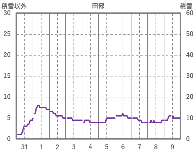 | 日 | 時 | 気温 | 降水 | 風向/風速 | 日照 | 積雪 | 降雪 |