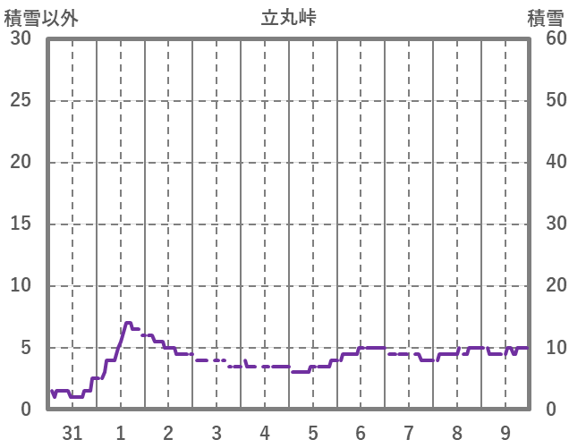 | 日 | 時 | 気温 | 降水 | 風向/風速 | 日照 | 積雪 | 降雪 |
