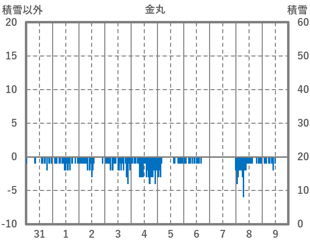 | 日 | 時 | 気温 | 降水 | 風向/風速 | 日照 | 積雪 | 降雪 |