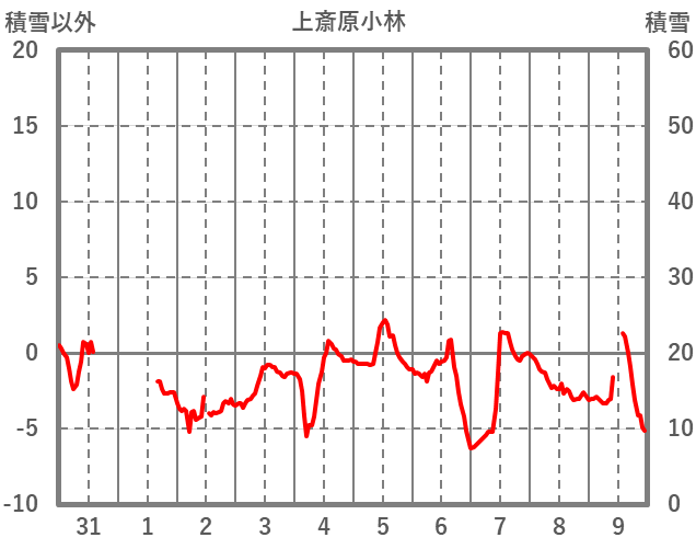 | 日 | 時 | 気温 | 降水 | 風向/風速 | 日照 | 積雪 | 降雪 |