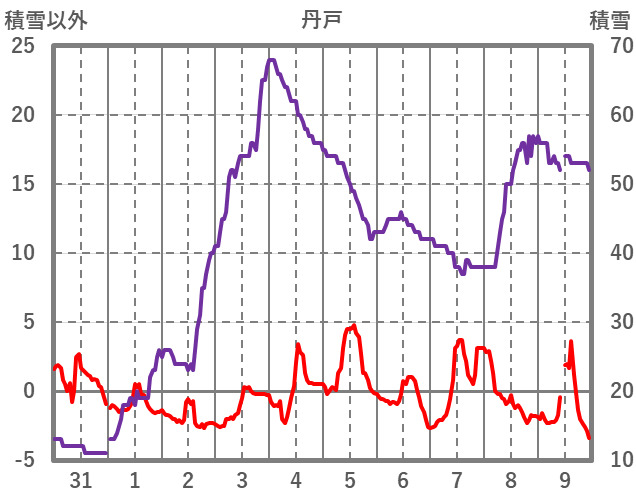 | 日 | 時 | 気温 | 降水 | 風向/風速 | 日照 | 積雪 | 降雪 |