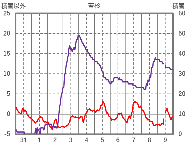 | 日 | 時 | 気温 | 降水 | 風向/風速 | 日照 | 積雪 | 降雪 |