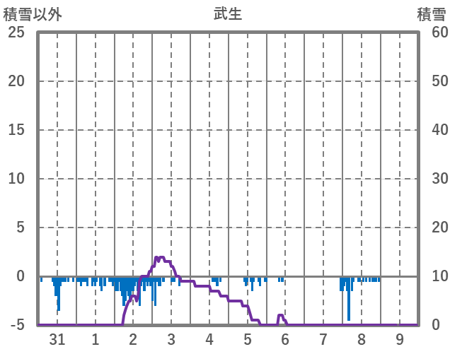| 日 | 時 | 気温 | 降水 | 風向/風速 | 日照 | 積雪 | 降雪 |