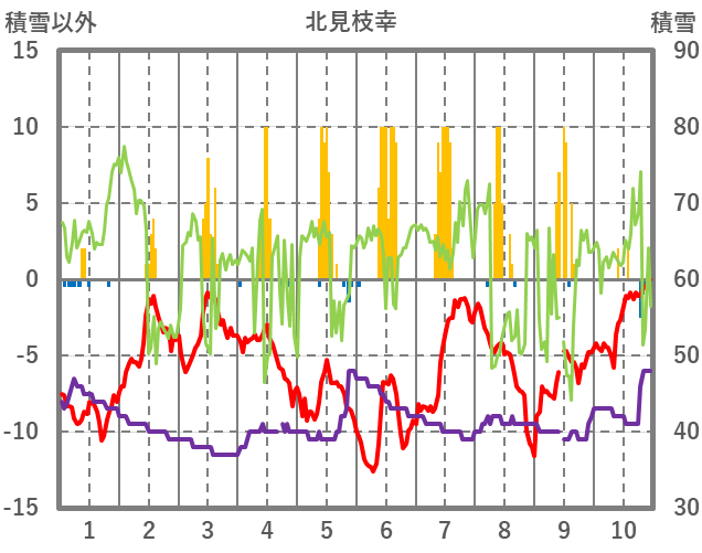 | 日 | 時 | 気温 | 降水 | 風向/風速 | 日照 | 積雪 | 降雪 |