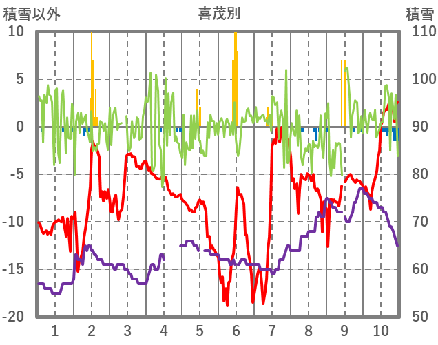 | 日 | 時 | 気温 | 降水 | 風向/風速 | 日照 | 積雪 | 降雪 |