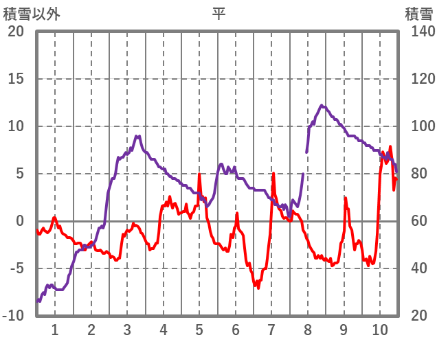 | 日 | 時 | 気温 | 降水 | 風向/風速 | 日照 | 積雪 | 降雪 |