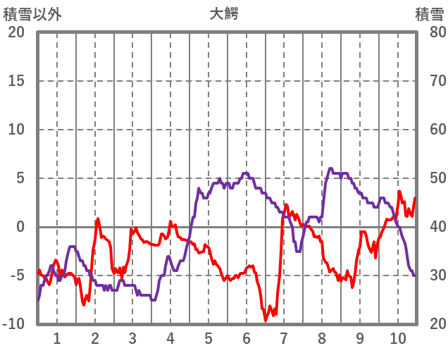 | 日 | 時 | 気温 | 降水 | 風向/風速 | 日照 | 積雪 | 降雪 |