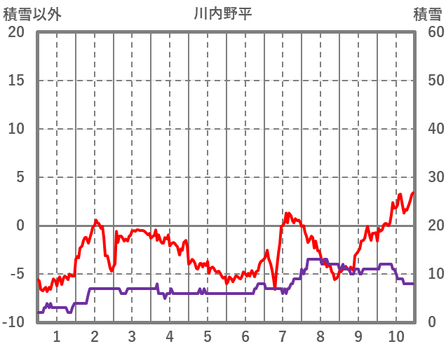 | 日 | 時 | 気温 | 降水 | 風向/風速 | 日照 | 積雪 | 降雪 |