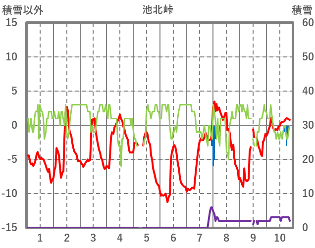 | 日 | 時 | 気温 | 降水 | 風向/風速 | 日照 | 積雪 | 降雪 |