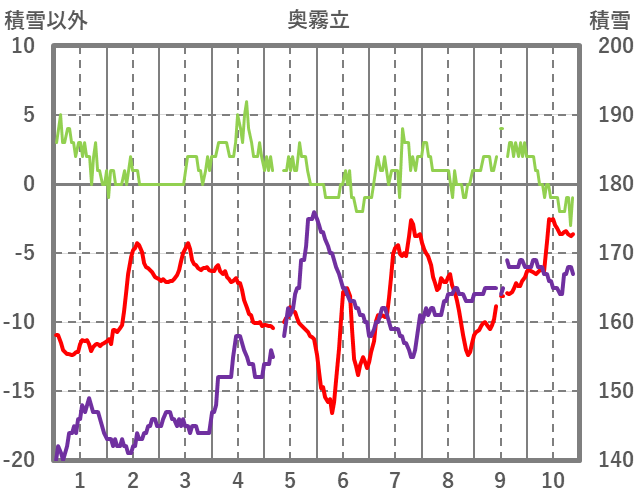 | 日 | 時 | 気温 | 降水 | 風向/風速 | 日照 | 積雪 | 降雪 |