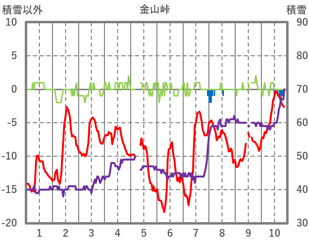 | 日 | 時 | 気温 | 降水 | 風向/風速 | 日照 | 積雪 | 降雪 |