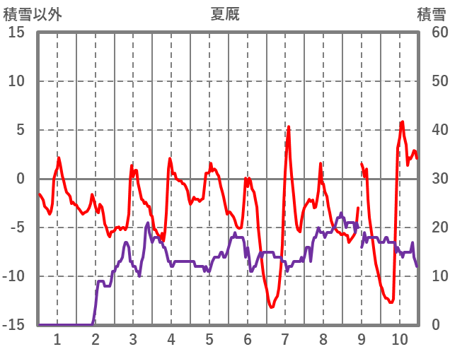 | 日 | 時 | 気温 | 降水 | 風向/風速 | 日照 | 積雪 | 降雪 |