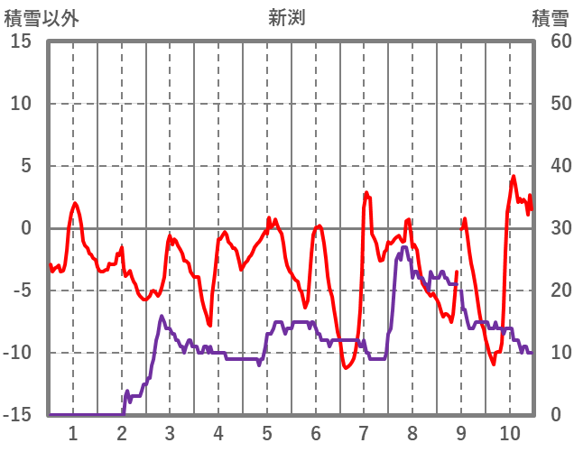 | 日 | 時 | 気温 | 降水 | 風向/風速 | 日照 | 積雪 | 降雪 |