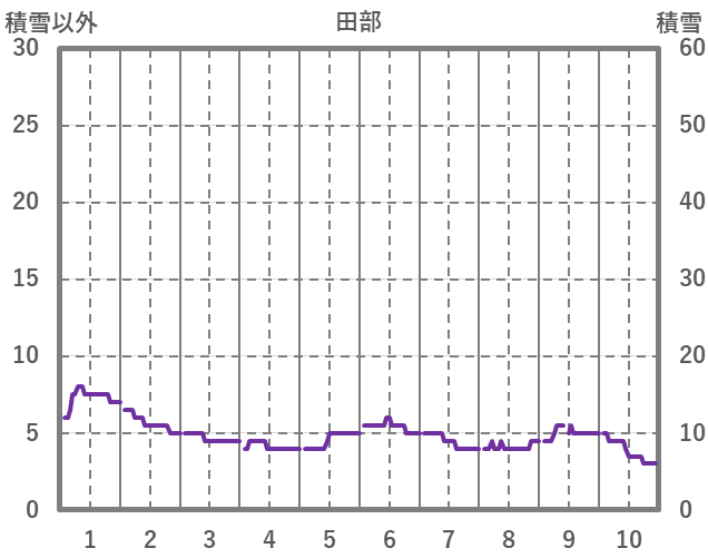 | 日 | 時 | 気温 | 降水 | 風向/風速 | 日照 | 積雪 | 降雪 |