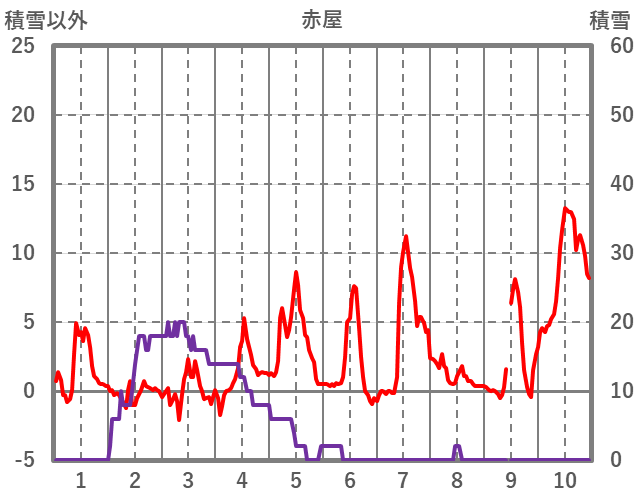| 日 | 時 | 気温 | 降水 | 風向/風速 | 日照 | 積雪 | 降雪 |