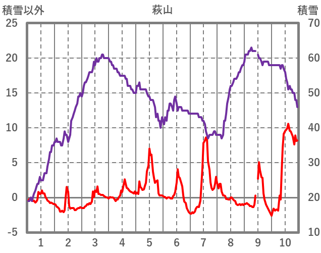 | 日 | 時 | 気温 | 降水 | 風向/風速 | 日照 | 積雪 | 降雪 |