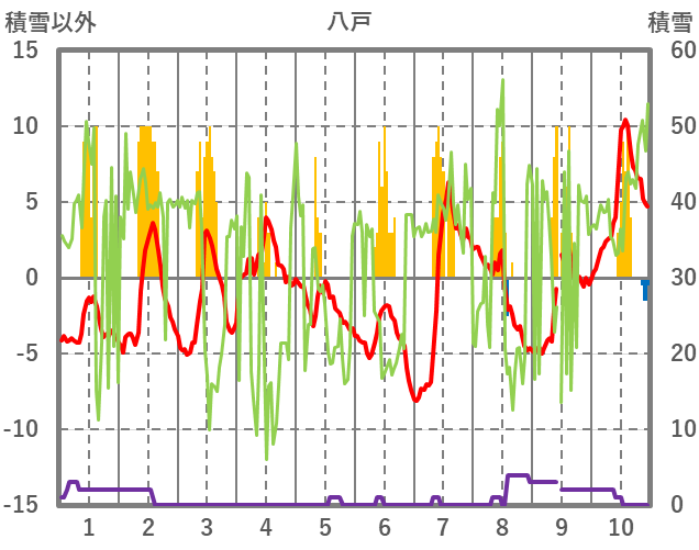 | 日 | 時 | 気温 | 降水 | 風向/風速 | 日照 | 積雪 | 降雪 |