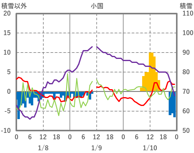| 日 | 時 | 気温 | 降水 | 風向/風速 | 日照 | 積雪 | 降雪 |