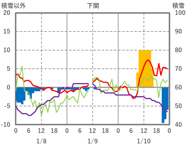 | 日 | 時 | 気温 | 降水 | 風向/風速 | 日照 | 積雪 | 降雪 |