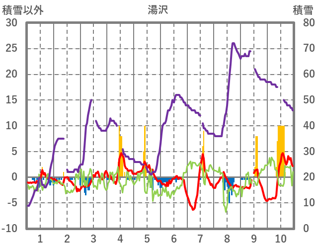 | 日 | 時 | 気温 | 降水 | 風向/風速 | 日照 | 積雪 | 降雪 |