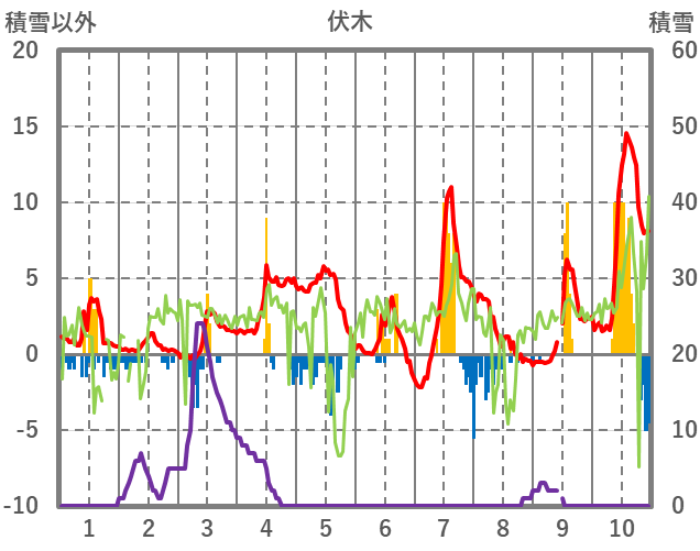| 日 | 時 | 気温 | 降水 | 風向/風速 | 日照 | 積雪 | 降雪 |