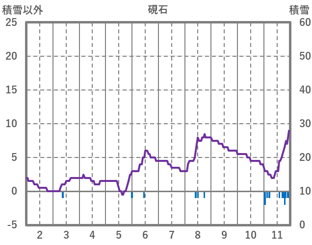 | 日 | 時 | 気温 | 降水 | 風向/風速 | 日照 | 積雪 | 降雪 |